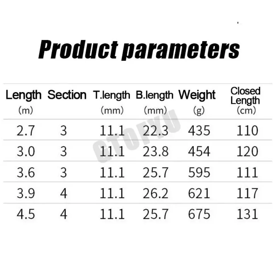 Length: 2.7m 3.0m 3.6m 3.9m 4.5m