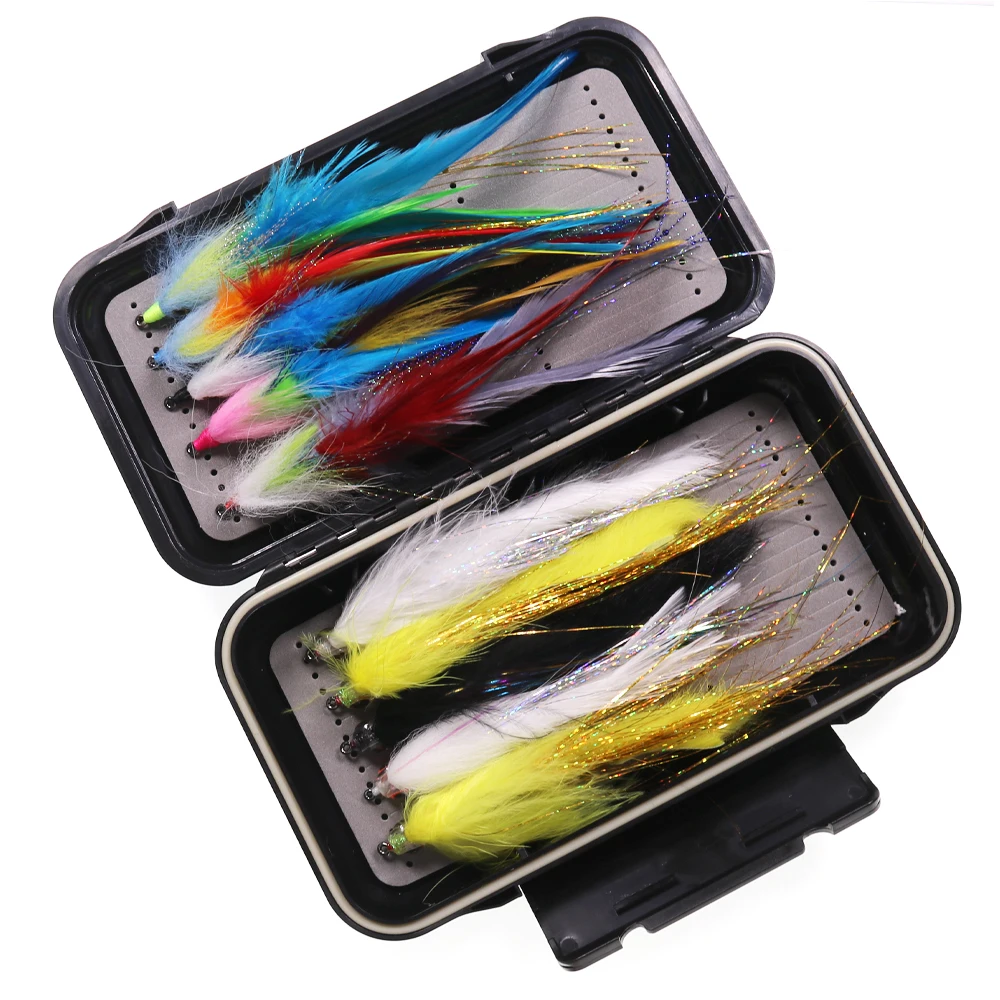 ICERIO 10pcs Saltwater Streamer Fly Set Box 3 Style Fish Streamer Fly Bass Pike Muskie Fishing Lure with Waterproof Fly Box