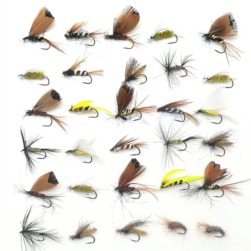 KKWEZVA 30pcs Fishing Lure Butter fly Insects different Style Salmon Flies Trout Single Dry Fly Fishing Lures Fishing Tackle